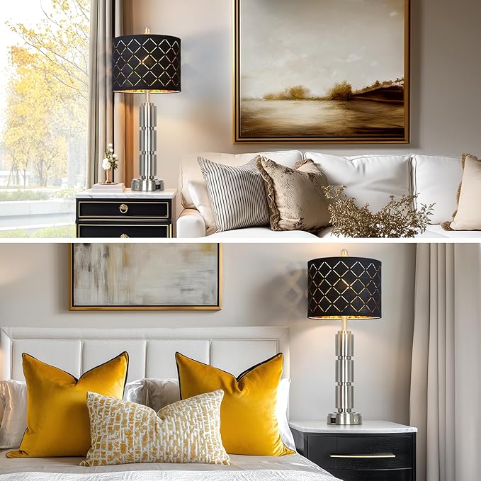 - 【Modern Silver Design for Elegance】 Luxeflow large silver table lamp set of 2 features a classic silver metal body with linen shades, adding a touch of luxury to any living room, bedroom, or office. Perfect for nightstands, end tables, and bedside tables, these lamps elevate your home decor with their sophisticated design