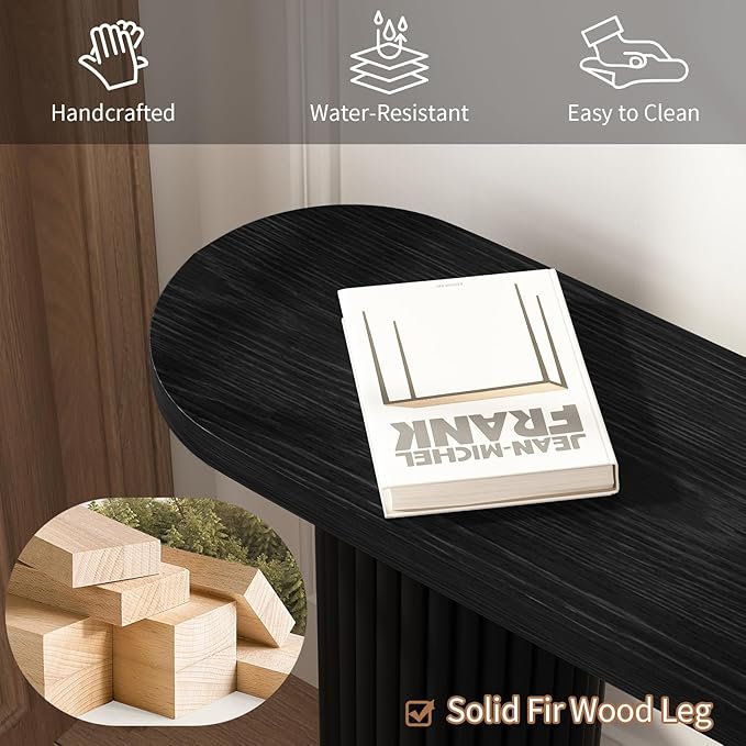 - Artisan Fluted Legs-Elevate your entryway with our meticulously crafted couch table featuring distinctive fluted round legs. Precision-cut grooves add dimensional interest to the wood grain surface, highlighting the natural variations. Unlike flat-surfaced alternatives, our fluted design adds dimensional sophistication while maintaining the sturdy reliability of solid wood construction.