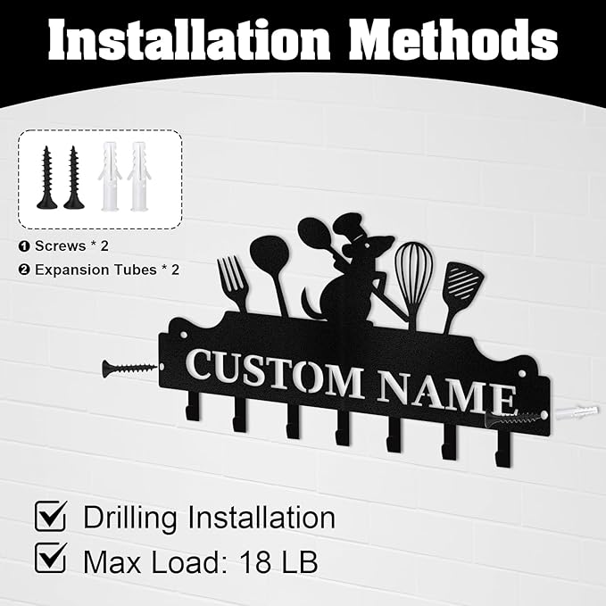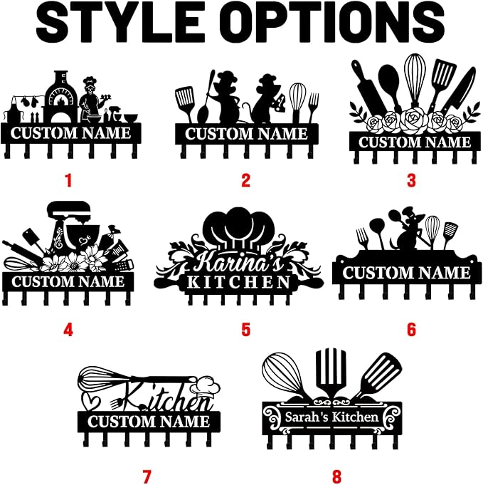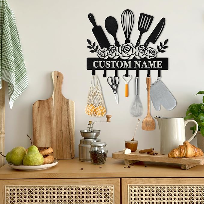 Personalised Key Holder for Wall, Kitchen Theme Key Holder Wall Mount, Kitchen Hooks for Utensils, Decorative Key Hanger Organizer for Dining Room Restaurant Entryway, Home Decor Gifts