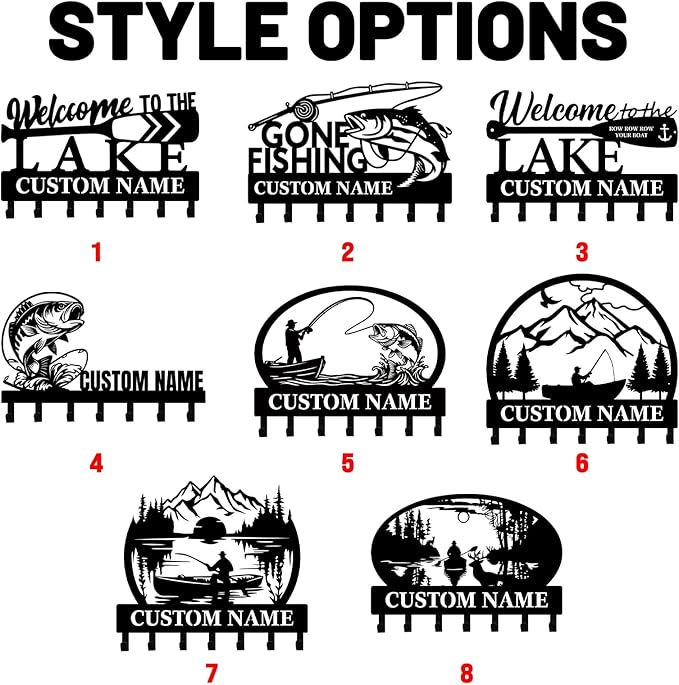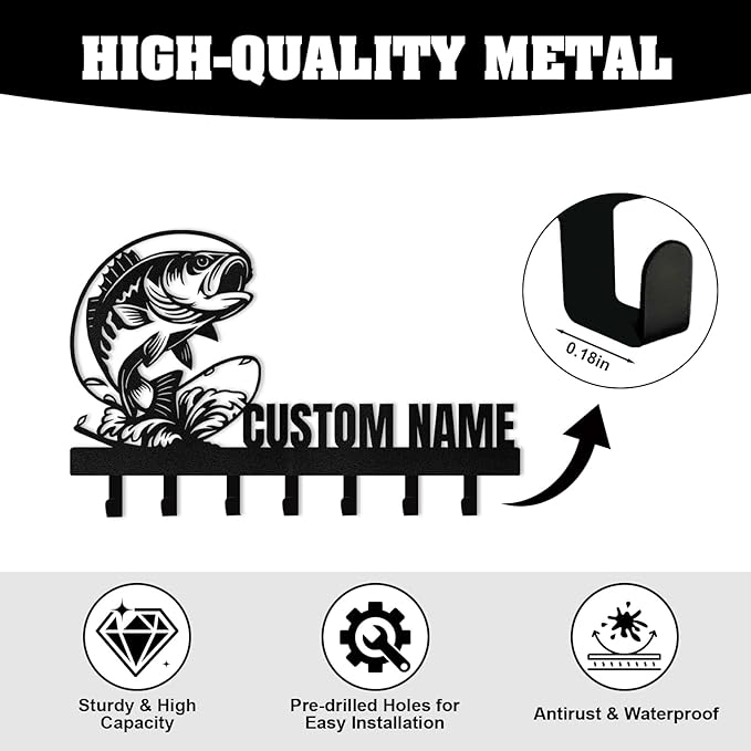 Personalised Fishing Key Holder for Wall, Key Holder Wall Mount, Lake Fishing Decor, Decorative Key Rack Coat Hooks for Bathroom Entryway Kitchen Doorway, Gifts for Fishermen