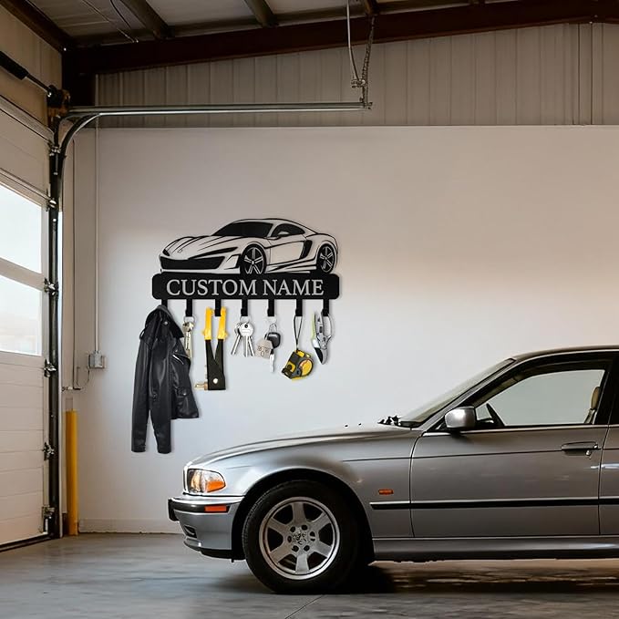 Customized Car Garage Key Holder for Wall, Key Holder Wall Mount, Vintage Man Cave Decor, Key Rack Organizer, Decorative Tools Hooks for Workshop Garage Office Entryway, Personalised Gifts