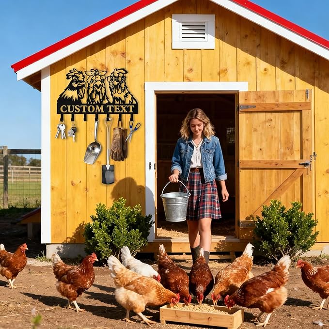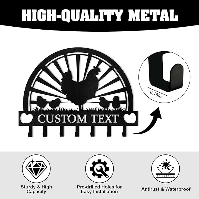Personalised Metal Key Holder for Wall, Roosters Hens Key Holder Wall Mount, Chicken Wall Art Decor, Key Organizer Hanger for Kitchen Farmhouse Hallway Office, Housewarming Gifts