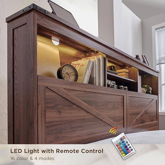 - 52" Tall LUXURY FARMHOUSE BED HEADBOARD: The carefully crafted 52" tall storage headboard bed frame makes it easier to sit up when you get up, reduces stress on your lower back and back, improves comfort, and increases extra storage space. With high quality faux solid wood texture, it is destined to be a high-end eye-catching piece of furniture in your bedroom.