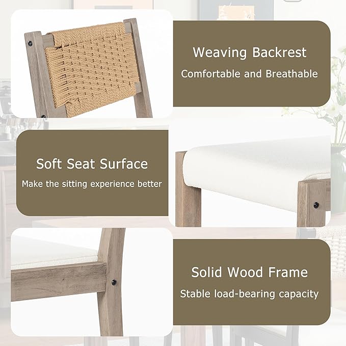 - Vintage Style Design: The chair boasts a vintage-inspired design with a woven backrest, adding a touch of elegance and sophistication to any dining space