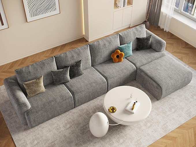 - Premium&Durable Chenille Fabric: The EASE MOOSE modular sofa is made of modern, premium skin-friendly chenille fabric that is gentle on the skin, pet-friendly and easy to care for. Compared to other fabric sofas that are prone to wrinkles, our chenille fabric cloud couch, once fluffy, will 【not wrinkle】easily. The smooth surface contact also creates a visually appealing and streamlined look, enhancing the overall aesthetic of your room.