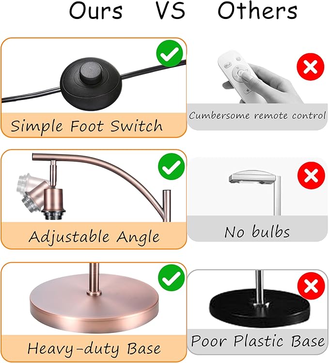 - **3-Year Floor Lamp Warranty: Bulbs, Adjustable Arms & All**This lamps for living room covers LED brightness fade, loose joints, even accidental tip-overs (thanks to our weighted base!). Message us From Amazon for replacements—90% resolved in 24hrs. Our standing lamp Includes lifetime style upgrades to match future home décor trends. Your living room stays perfect.