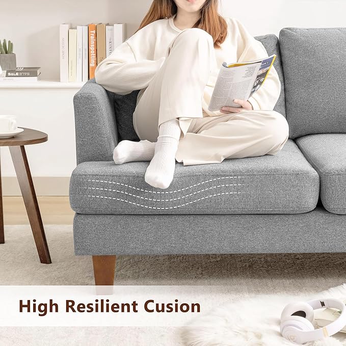 3 Seater Sofa Couch with Deep Seats, 89" Mid Century Modern Upholstered Sofa with Armrests, Comfy Couches for Living Room, Bedroom and Office, Linen Fabric Apartment Couch (Linen Grey)