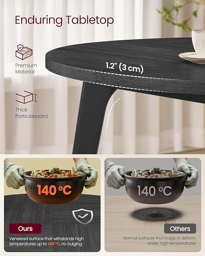 - Heat-Resistant Surface: The veneered tabletop of this dinner table can withstand heat up to 140°C, so you can safely place hot pots and dishes without worrying about marks or warping