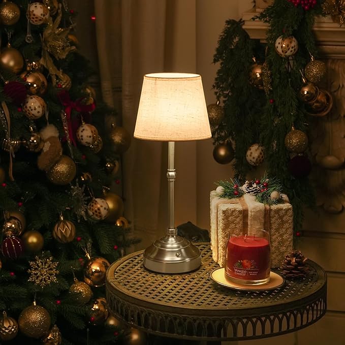 - 【Elegant Home Décor for Versatile Scenarios】Featuring a premium linen-textured fabric shade paired with a sleek brushed sliver metal body, this lamp excels as both an elegant light source and a home decor piece. Beyond complementing bedside tables, office desks, and dining settings, it effortlessly brightens entryways for a welcoming glow and adds functional ambiance to kitchen counters.