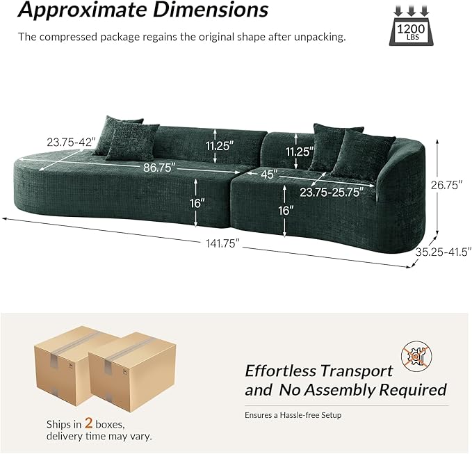 - EFFORTLESS SETUP PROCESS: Requires no assembly or tools, simply unbox and position in your desired layout. The innovative compression packaging allows for convenient delivery while the high-quality foam quickly expands to its intended shape and comfort level.