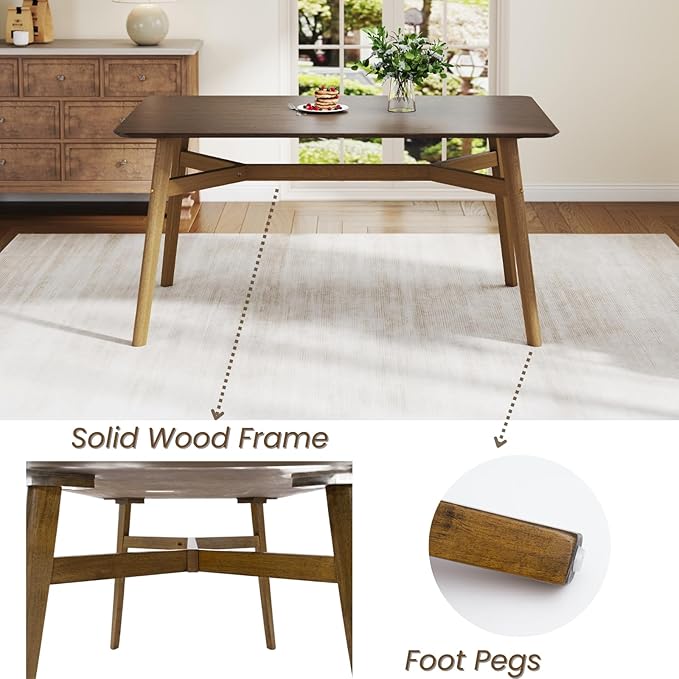 DUOMAY Modern Wooden Dining Table for 4-6 People, 59" Large Rectangular Dinner Table with Wood Legs for Home Dining Room Restaurant Farmhouse Kitchen, Brown