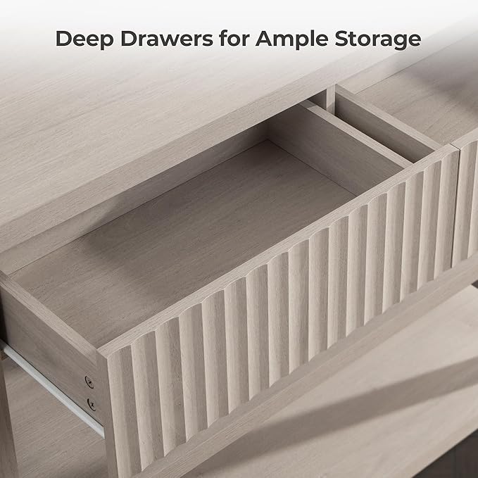 SICOTAS Fluted Entryway Table with Storage, 44.13" W Console Table with 2 Drawers & 2 Tier Storage Shelves, Modern Sofa Table Behind The Couch for Living Room, Entrance, Hallway, Foyer, White Alder