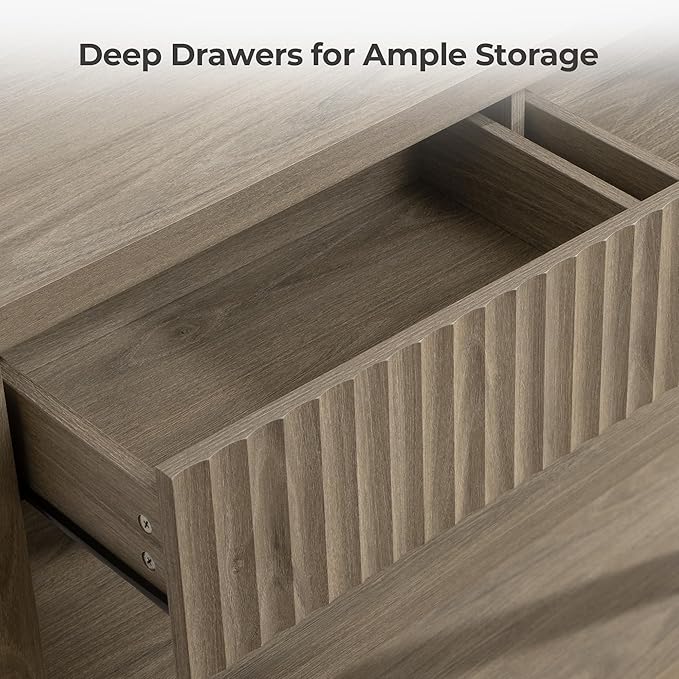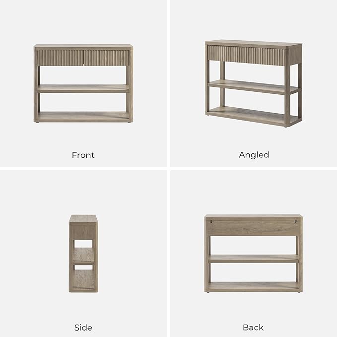 - 【Elevate Your First Home with Timeless Style】- Designed for the newly set-up first dream home, this fluted console table with storage marries sophisticated design with everyday functionality. The handcrafted fluted detailing and soft, curved edges bring a touch of custom-built elegance to your entryway, creating a warm and inviting first impression for your guests. Finished with a rich wood grain that adds texture and modern charm. It's the foundation of your home's story.