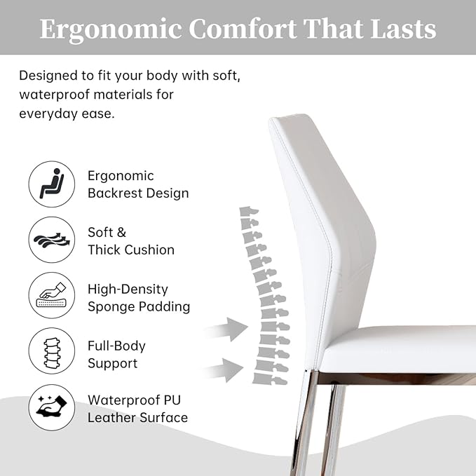 - Dining Table Set for 4 with PU Leather Dining Chairs – Soft, Supportive, and Waterproof: Sit comfortably through long meals with our PU leather dining chairs, padded with high-density sponge and shaped to your back for ergonomic support. The waterproof leather finish makes cleanup effortless and stylish