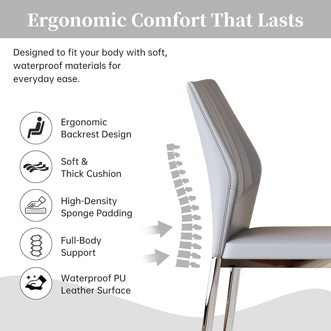- Dining Table Set for 6 with PU Leather Dining Chairs – Soft, Supportive, and Waterproof: Sit comfortably through long meals with our PU leather dining chairs, padded with high-density sponge and shaped to your back for ergonomic support. The waterproof leather finish makes cleanup effortless and stylish