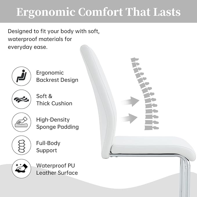 - Dining Table Set for 4 with PU Leather Dining Chairs – Soft, Supportive, and Waterproof: Sit comfortably through long meals with our PU leather dining chairs, padded with high-density sponge and shaped to your back for ergonomic support. The waterproof leather finish makes cleanup effortless and stylish