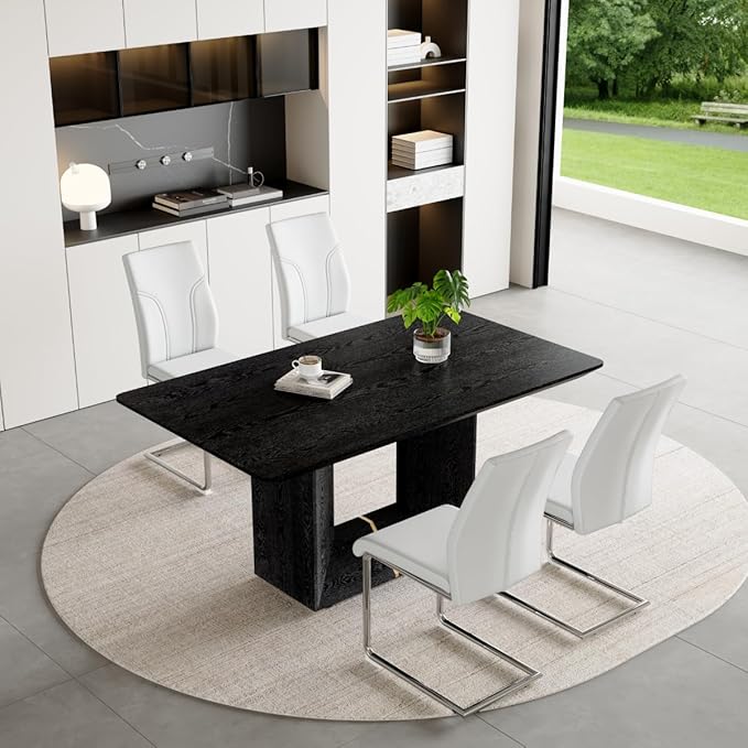 - Rectangular Dining Table Set for 4 – Spacious, Stable, and Modern: Tired of small wobbly tables? Our dinner table set for 4 offers a 63"" spacious top and a geometric pedestal base that stays perfectly balanced. The sleek black matte finish adds a modern dining table set vibe to elevate your dining room