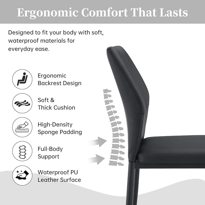 - Dining Table Set for 6 with PU Leather Dining Chairs – Soft, Supportive, and Waterproof: Sit comfortably through long meals with our PU leather dining chairs, padded with high-density sponge and shaped to your back for ergonomic support. The waterproof leather finish makes cleanup effortless and stylish