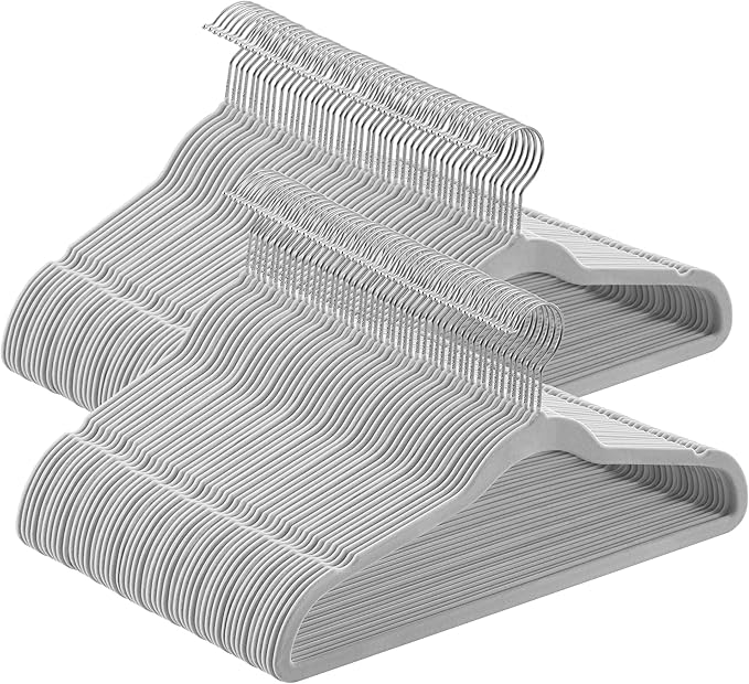 - What You Get: A set of 100 SONGMICS velvet hangers with 360° swivel silver-colored hooks, shoulder grooves, and a maximum load capacity of 11 lb (5 kg) each for an organized closet
