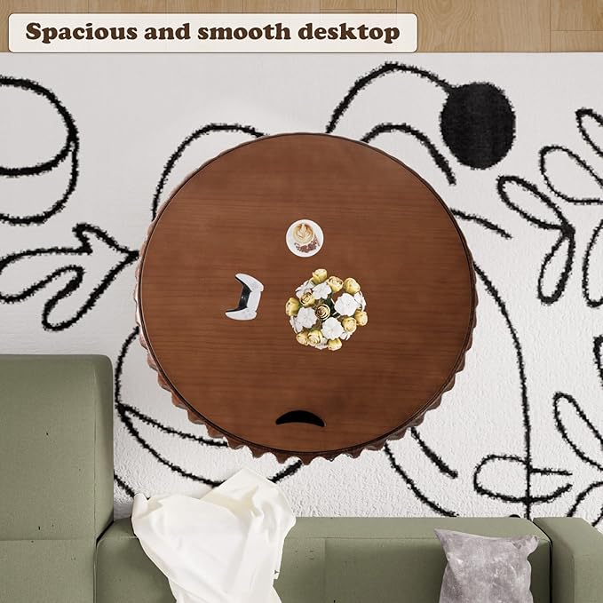 - Sturdy MDF Material: The overall frame material of this round top coffee table is made of thickened MDF, it has excellent stability and durability. The solid wood fluted relief not only makes this coffee table more durable, but also can be kept as new after regular cleaning. You can store items inside, ensuring a clean and tidy home.