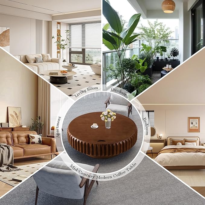 - Versatile Use: This modern luxury circle drum center table is a perfect accent work in any area you like, both practical and decorative. The wooden round coffee table can also be used as a decorative display table, or just as a simple accent piece for your living room, bedroom, office, or any places that needs extra storage. Whether you prefer modern or minimalist style, it will easily fit into your existing decor.