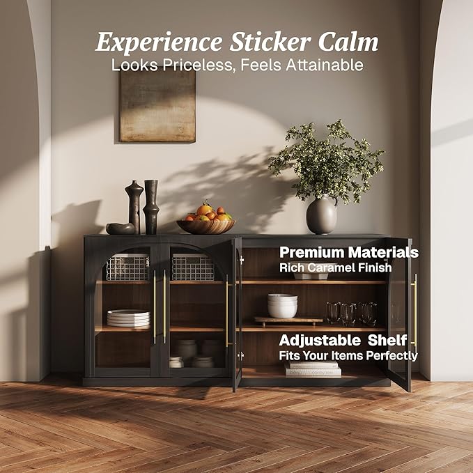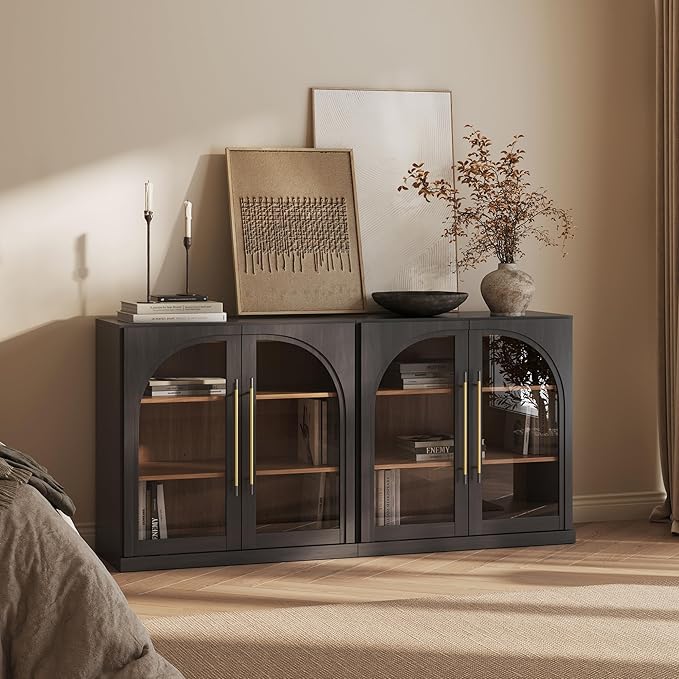 - Classic Modern Style with Arched Glass Doors: Featuring graceful arched glass doors and clean modern lines, this cabinet brings timeless elegance to any dining room, living room, or entryway. Available in two versatile finishes to complement both light and dark decor.