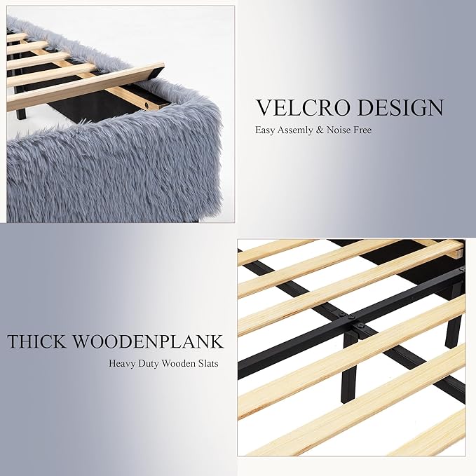 - Fluffy Texture: Crafted from premium faux fur fabric, brafab cloud bed frame offers a velvety-smooth feel that's even more plush and soft than ordinary Boucle fabric, delivering ultimate comfort for both sight and touch. It will become your perfect cozy retreat for unwinding and enjoying a good read during chilly winter months.