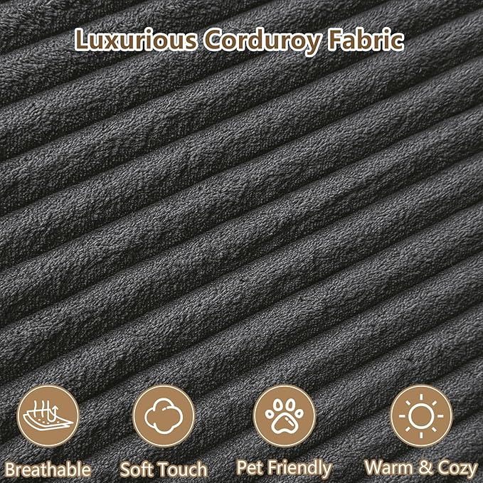 - Premium Corduroy Fabric: Soft & Easy-Care, Wrapped in high-quality corduroy, the sofa delivers unrivaled softness and warmth. The upgraded material boosts breathability and stain resistance—easy to clean and maintain. Its unique texture and gentle sheen stand out, while keeping you cozy in every season.