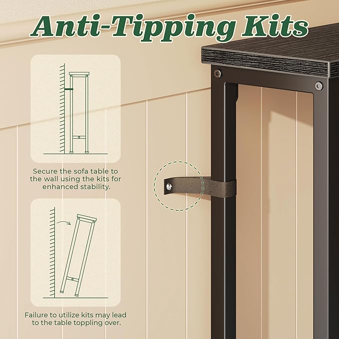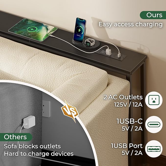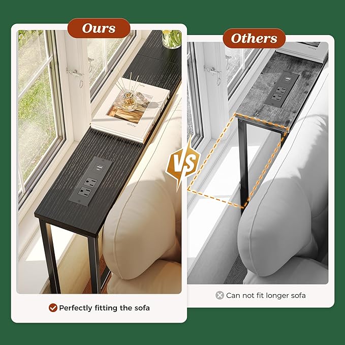- 【Easy to Assemble & Fits Anywhere】Whether behind a sofa, in an entryway, or along a narrow wall, this couch table behind sofa is the perfect storage solution for tight spaces. Designed to leave room for wall vents and easy airflow. Comes with clear instructions, labeled parts, and tools included, you'll have this sofa table with outlet set up in no time