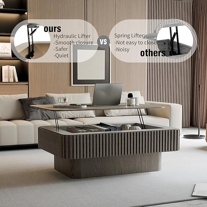 - SOFT-CLOSE HYDRAULIC SYSTEM FOR SAFETY: Equipped with a premium hydraulic lift mechanism, the tabletop opens smoothly and closes gently, preventing slamming or pinched fingers. The durable construction ensures long-lasting performance