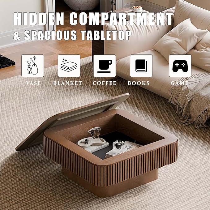 - HIDDEN STORAGE FOR SMALL SPACES: This square coffee table with storage includes a hollow interior, perfect for stashing magazines, remote controls, or blankets. Keep your space clutter-free without sacrificing style-ideal for apartments and cozy living rooms