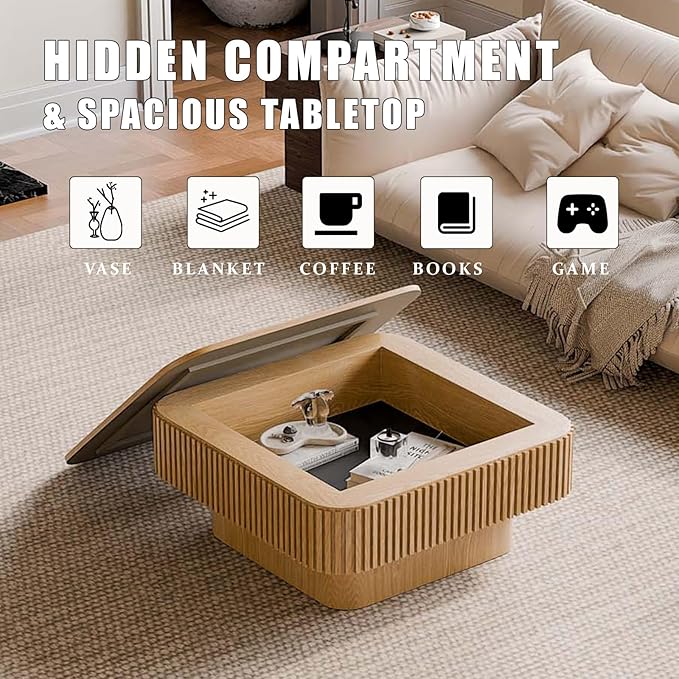 - HIDDEN STORAGE FOR SMALL SPACES: This square coffee table with storage includes a hollow interior, perfect for stashing magazines, remote controls, or blankets. Keep your space clutter-free without sacrificing style-ideal for apartments and cozy living rooms