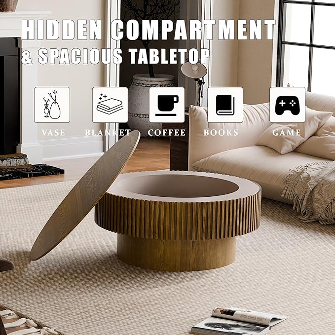 - HIDDEN STORAGE FOR SMALL SPACES: This round coffee table with storage includes a hollow interior, perfect for stashing magazines, remote controls, or blankets. Keep your space clutter-free without sacrificing style-ideal for apartments and cozy living rooms