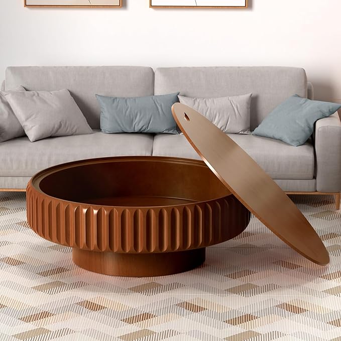 - Ample Storage Space: Our round coffee table has hidden compartment which is spacious enough to store blankets, books, toys, snacks and any items that need to be hidden or stored, keeping them away from dust and keeping your living room tidy and clean. The top surface space of 31.5" x 31.5" is spacious enough to display decorative ornaments, vases, laptops, etc.