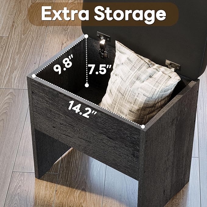 - Small and Functional Design: Our cute wood vanity has a small footprint and is functional, has storage stool, drawer and shelves, keeping your grooming essentials organized and within reach