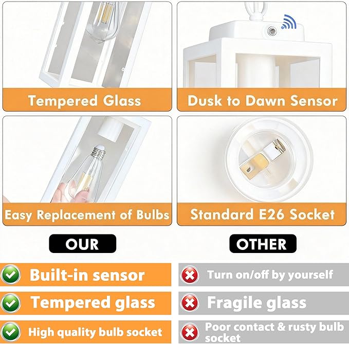 - How to check if your lights are working properly. After the installation is completed, if you find that the porch light is not on, please use the cover to block the sensor up to about 30 seconds, the light will be on; if you need the pendant light to go out, please use the flashlight to shine on the sensor about 15 seconds, the light will go out.