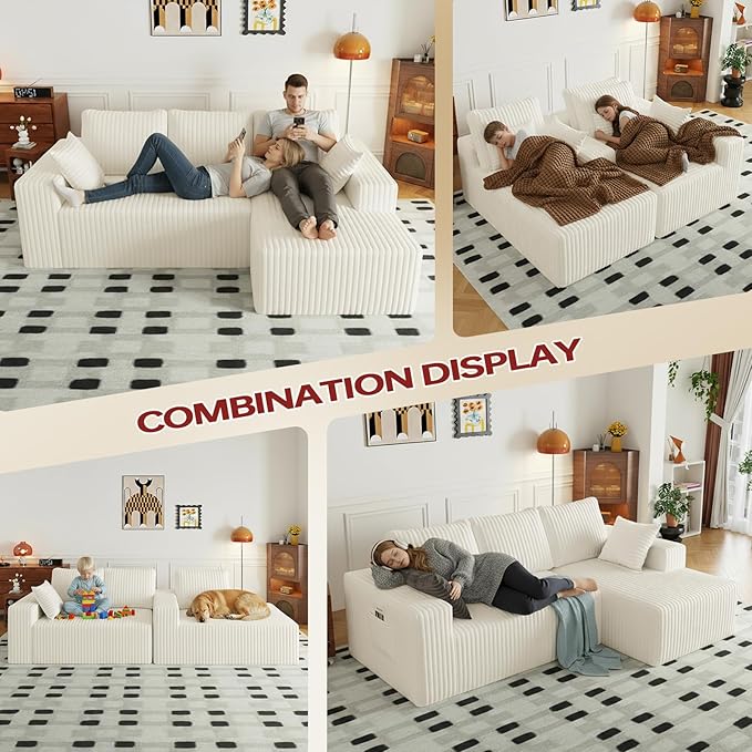 - 【Modular Sectional Sofa】: Our sectional sofa couch consists of two pieces L- shape sofa. This modular sectional couch have 4 using modes, you can convert the modular sectional sofa according to your needs. add flexibility and personalized style to your living space