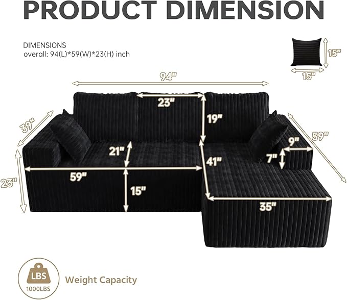 - 【Comfy Chaise Couch】: Experience exceptional comfort with our spacious sofa, featuring a 41" seat depth. The chaise lounge is perfect for relaxing, designed with high-resilience foam for superior support and long-lasting durability, ensuring a luxurious seating experience