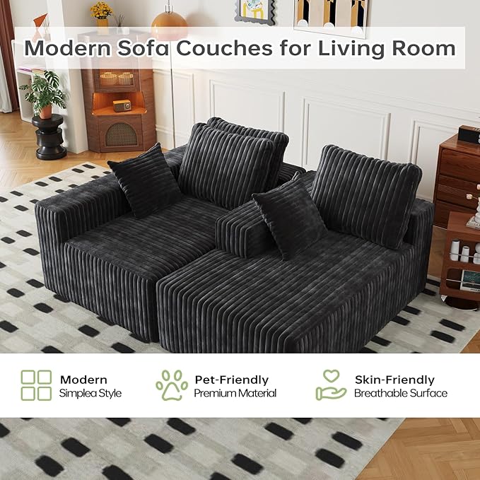 - 【Flexible Modular Sofa】: The cloud couch is made of breathable fabric and high-resilience memory foam with 3 back cushion and 2 pillows, providing you with a super comfortable experience. The anti slip design at the bottom ensures the stability of the sofa