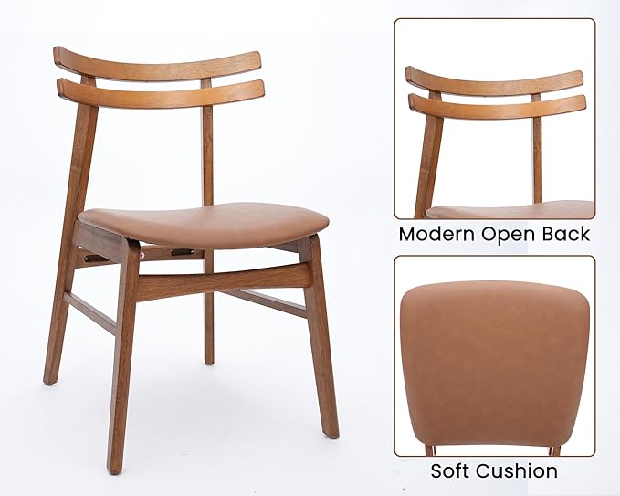 VESCASA 5-Piece Dining Set, 59" L Colonial Oak Rectangle Wood Dining Table with 4 Curved Back Faux Leather Brown Wood Dining Chairs for Dining Room, Kitchen, Restaurant, Dining Set for 4