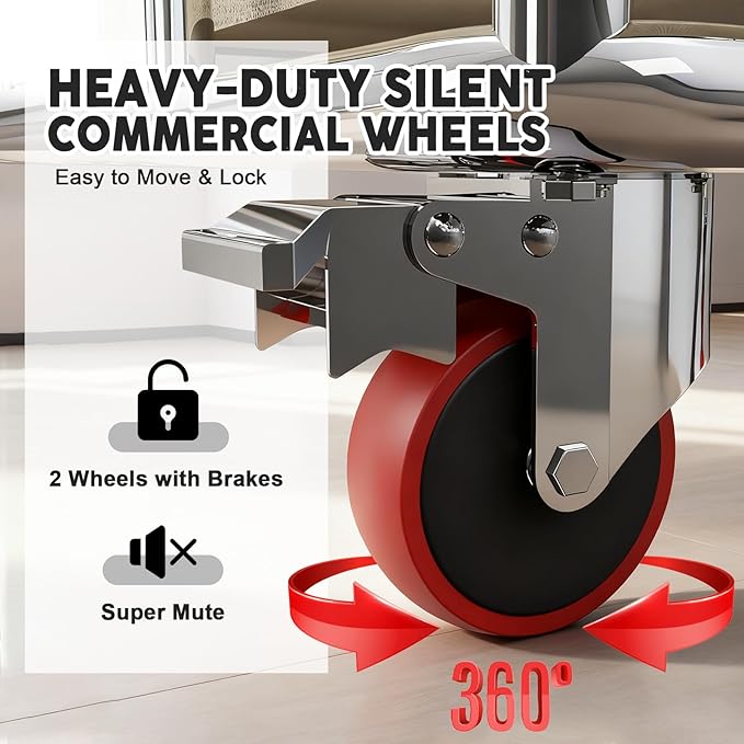 - 【Lockable Silent Casters】- Four large 360° swivel industrial wheels (2 with brakes) make it easy to move the laundry between rooms and lock in place when needed. This rolling laundry cart moves effortlessly even when fully loaded and won't hurt the floor, making clothes transportation effortless and noiseless.