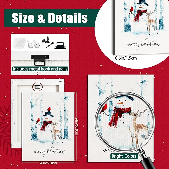 - 【Easy to Hang】: Equipped with a pre-attached hanger, this Christmas canvas art sets up in seconds. Simply hang it and instantly immerse in a joyful festive atmosphere.