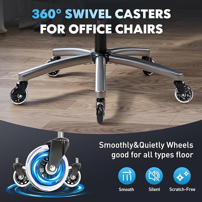 - STURDY CONSTRUCTION & SMOOTH MOBILITY: Built for stability and movement, this black desk chair features a heavy-duty metal base and casters that allow for effortless 360° swivel and easy mobility on floor. The reliable gas lift enables quick and secure height adjustment, ensuring you can find your ideal seating position.