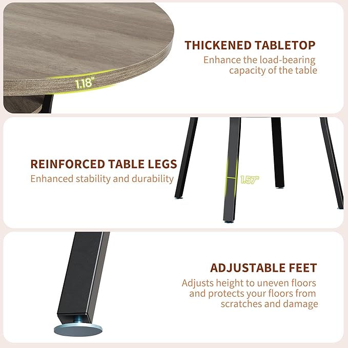 - 47" ROUND DINING TABLE: This 47-inch round dining table comfortably seats 4, making it perfect for family dinners and gatherings