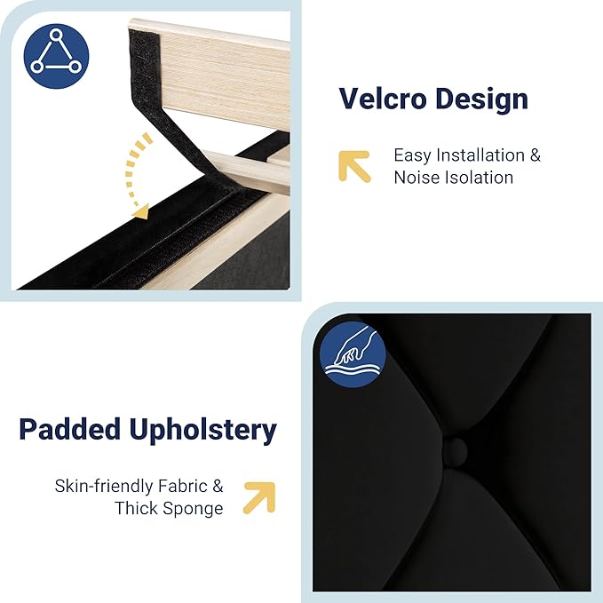 - Noise Free Bed Frame:Queen size bed frame with padded upholstered headboard complements any decor. EVA mute bars and quality construction prevent squeaks for quiet, hassle-free use