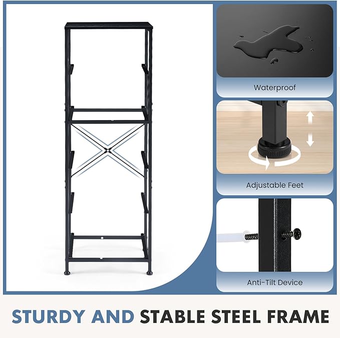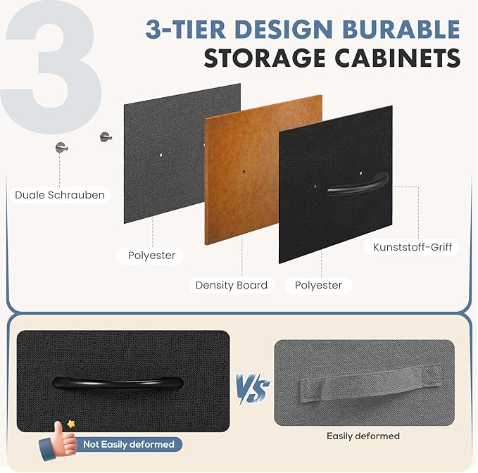 - 【Robust and Safe Structure】Features an X-shaped metal back frame for enhanced stability, a water-resistant MDF top for easy cleaning, and durable fabric bins with fade-resistant handles. Adjustable feet and anti-tip kits ensure safety on uneven floors.