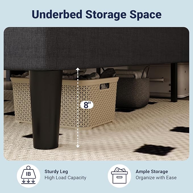 - Under-Bed Storage Space: The bed frame full offers 8" under-bed space for storage boxes and other essentials. Easy access for vacuum cleaners or robot sweepers keeps your bedroom tidy and organized