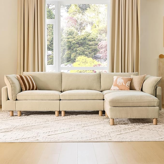 CHITA 127" Super Large Sectional Couches for Living Room, Modular Cloud Couch Sectional Sofa, Premium Fabric Couches, Down Filled, High Density Foam, Chenille in Beige, 4 Seat L Shaped