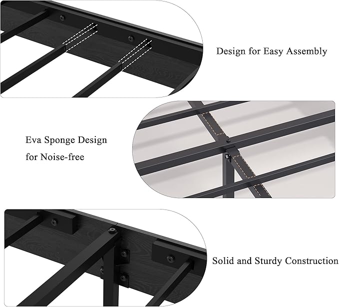 - Solid Construction: Our bed frame is crafted with sturdy engineered wood, reinforced with metal components and a robust slat system, this bed boasts a substantial 800 lb weight capacity without requiring a box spring.