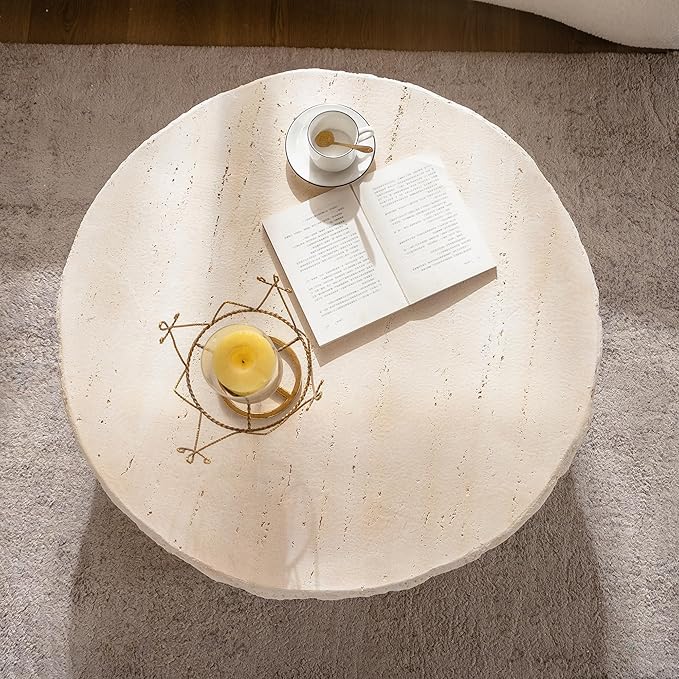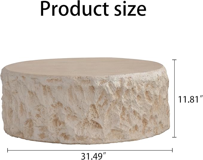 - 【UNIQUE DESIGN】Crafted from premium MgO material, this striking coffee table features a sleek, organic round shape. The edges of the coffee table are polished to ensure a stylish and solid piece of furniture, eliminating the safety hazards associated with sharp corners.